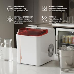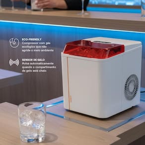 Gelo em minutos e praticidade onde você estiver. A Máquina de Gelo Spirit 12Kg é leve, portátil e eficiente, ideal para festas, escritórios ou viagens. Produz gelo tipo bullet em apenas 10 minutos, com painel intuitivo, função de autolimpeza e design moderno que combina com qualquer ambiente.