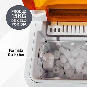 A Máquina de Gelo Spirit 15Kg Branco e Laranja SMG2 une design moderno, rapidez e praticidade para qualquer ocasião. Com tampa transparente, acabamento em inox e produção inicial em minutos pelo modo Turbo, garante gelo sempre disponível sem espera. Possui painel intuitivo, função de limpeza automática, cesto removível e sensor que avisa quando o reservatório está cheio. Silenciosa e ecológica, utiliza gás R600a e produz gelo puro com água potável, oferecendo eficiência e elegância no mesmo produto.