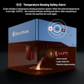5. Função de alarme de temperatura: o iCube vem com um dispositivo de alarme de temperatura. Quando a temperatura dentro da máquina de gravação excede 45 °C, a máquina para de funcionar e emite um alarme sonoro para garantir a segurança da máquina e dos usuários. Quando a temperatura cai, ela pode funcionar normalmente após reiniciar.