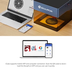 4. Vários métodos de conexão: suporta conexão de celular e computador. Você pode usar o Sculpfun APP no seu celular para se conectar à máquina iCube, ou pode conectá-lo a um computador via Bluetooth ou cabo de dados de interface Tipo C. O Sculpfun APP tem as funções de edição de texto, tirar fotos, álbum de fotos, biblioteca de materiais, borracha e redimensionamento manual. Vários modos de gravação: escala de cinza, preto e branco, esboço, Dither e outros ajustes de modo de gravação. Personalize seu padrão.