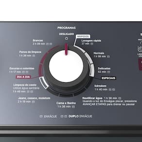 Incluindo ciclo de lavagem rápida, com roupas limpas em até 27 minutos.