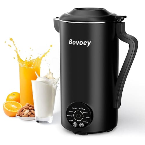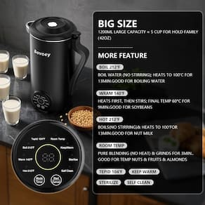Máquina automática para preparo de leite de nozes, amêndoas, aveia e soja. Funções de temperatura ambiente, aquecimento (60°C e 100°C), ferver água, manter aquecido (até 6 horas), início com atraso (até 18 horas) e autolimpeza.Vendido e entregue por nocnoc