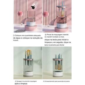 É muito fácil de usar, basta colocar uma quantidade adequada de água, colocar a solução de limpeza, inserir o pincel de maquiagem na unidade principal, iniciar a limpeza e secar após a limpeza.