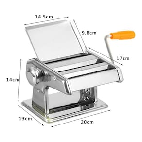 Máquina De Macarrão Cilindro Aço Inox Massa Caseira Talharim - Possui 3 regulagens: talharim, espaguete e massa laminada para lasanha;- Material: aço;- Botão de regulagem de espessura da massa até 8 espessuras diferentes ;- Diversidade de lâminas para variados tipos de massas;- Manivela removível e desenvolvida para gerar menor esforço;- Grampo fixador para melhor manuseio;Dimensões do produto: 20 x 19 x 13 cm C x L x A Comprimento dos rolos: 14 cmPeso: 2,5 kgConteúdo da Embalagem:- 1x Máquina de macarrão;- 1x Manivela;- 1x Grampo de fixação;- 1x Manual de instruções. Marca: Shopbr