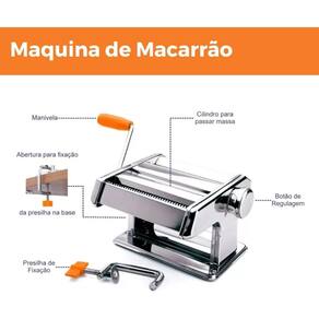 Maquina de Macarrão com Cilindro Aço Inox para Massa CaseiraA Maquina de Macarrão é o utensílio perfeito para o preparo de deliciosas refeições. Com ela você pode preparar 3 tipos diferentes de massa: talharim, espaguete e massa laminada para lasanha.Possui manivela removível e regulador de espessura da massa, possibilitando até 8 espessuras diferentes.Segura e resistente, possui grampo que fixa a máquina na bancada garantindo maior segurança e facilidade no trabalho, pois evita que a máquina se movimente enquanto é operada e é feita em aço inox, que proporciona maior durabilidade e vida útil ao produto.Além disso, a Máquina de Macarrão é Fácil de utilizar e limpar, leve, podendo ser transportada para qualquer local.- Possui 3 regulagens: talharim, espaguete e massa laminada para lasanha- Material: aço- Botão de regulagem de espessura da massa até 8 espessuras diferentes - Espessuras em Polegadas/Milímetros:1 - 0,125 - 3,175 mm2 - 0,95 - 2,413 mm3 - 0,85 - 2,159 mm4 - 0,75 - 1,905 mm5 - 0,65 - 1,651 mm6 - 0,55 - 1,397 mm7 - 0,45 - 1,143 mm8 - 0,35 - 0,889 mm- Diversidade de lâminas para variados tipos de massas- Manivela removível e desenvolvida para gerar menor esforço- Grampo fixador para melhor manuseioDimensões do produto: 20 x 19 x 13 cm C x L x A Comprimento dos rolos: 14 cmPeso: 2,5 kgConteúdo da Embalagem:1 Máquina de macarrão1 Manivela1 Grampo de fixação1 Manual de instruçõesATENÇÃO: Produto destinado exclusivamente para uso e consumo Não vendemos para revendedoresGarantia do vendedor: 30 dias