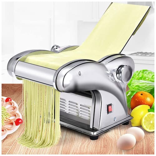 Este produto é uma máquina de prensagem totalmente nova, que pode ser usada como massa, de superfície fina de 1, e superfície de de largura. É uma prensadora de duas facas de aço inoxidável e não enferruja. O botão de ajuste possui 6 posições, a espessura da massa pode ser selecionada de 1,5 a através deste ajuste simples, a textura e o sabor da massa são alterados. Motor de 135W e com proteção automática contra superaquecimento, e confiável, muito adequado para uso doméstico. Devido à sua construção separada, a máquina é fácil de limpar e zenar seu rolo de macarrão e cortador de macarrão podem ser limpos para manter a máquina esterilizada e higiênica