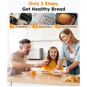 Máquina de Pão OSIPOTO 17 em 1, Inox Prata, Capacidade 907 gramas, Timer 15H, Baixo Ruído, Fácil Limpeza. Motor silencioso de 600W com distribuição de calor uniforme em 360°. Painel digital intuitivo. Cuba antiaderente. Ruído menor que 50dB.Acessórios