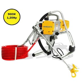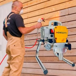 A Máquina de Pintura Airless MMA900 1.20hp Menegotti, é altamente confiável e eficaz para aumentar a produtividade em obras, garantindo um excelente rendimento e acabamento. O rendimento da Máquina de Pintura MMA 900, depende muito da viscosidade da tinta a ser aplicada, em média o equipamento projeta 1,5 l/min. Como o sistema de pintura “projeta e para” seu regime acaba sendo intermitente, logo, pode ser usada continuamente durante todo o dia. O principal diferencial desse modelo, é a possibilidade de aplicar Epóxi, PU e ter uma entrada que facilita a aplicação de óleo, ainda conta com um excelente custo-benefício.