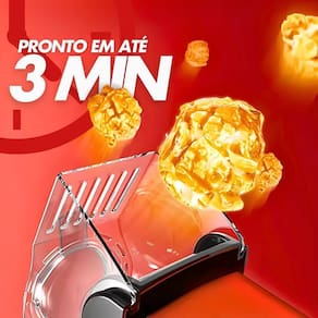 Benefícios: Praticidade e Velocidade: Prepare pipocas rapidamente e com facilidade, perfeita para qualquer momento. Saúde e Qualidade: Sem óleo, sem aditivos artificiais, ideal para uma alimentação saudável. Voltagem: 110v.