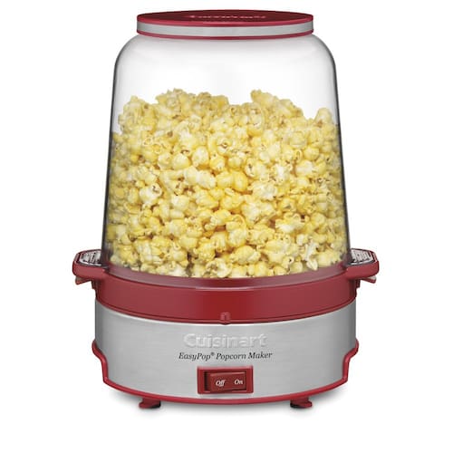 Máquina de pipoca Cuisinart CPM-700P1 EasyPop, vermelha - Tigela com ventilação embutida e tampa de tigela; braço de agitação motorizado para misturar uniformemente - Base de aço inoxidável escovado com logotipo em relevo e botão liga/desliga - Placa de cozinha removível de alumínio antiaderente; serve até 16 xícaras de pipoca - Pés antiderrapantes com armazenamento de cabos - Garantia limitada de 3 anos - NOTA: consulte o manual do usuário antes de usar