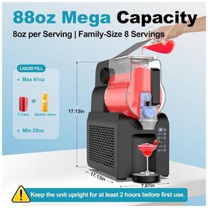 Com capacidade de 2,6 litros, a máquina de frozen possui um recipiente de 2,6 litros com capacidade máxima de aproximadamente 2,6 litros, servindo até 89 pessoas - ideal para festas e encontros. Preparar a bebida leva cerca de 15 a 45 minutos, dependendo dos ingredientes, volume e temperatura. Tecnologia de Resfriamento Rápido: a máquina de frozen utiliza resfriamento espiral 360 para congelamento uniforme e baixas temperaturas ideais, evitando diluição e preservando o sabor. Não é necessário gelo - desfrute de frozen suaves e saborosos em casa, como em uma loja profissional de bebidas. Uma Máquina de Frozen Multifuncional: esta máquina versátil transforma bebidas como vinho, café, refrigerante, suco ou leite em frozen suaves com apenas um passo. Escolha diferentes modos e concentrações para ajustar a espessura, atendendo várias preferências de sabor com facilidade. Não Faça Frozen Sem Açúcar: bebidas sem açúcar não conseguem alcançar a textura ideal de frozen. Para garantir resultados suaves e consistentes, adicione açúcar - pelo menos 5% da bebida. Adoçantes artificiais ou substitutos não atendem a esse requisito. Consulte as receitas fornecidas para as quantidades de açúcar adequadas e os melhores resultados com a máquina de frozen. Frozen Alcoólicos: se planeja fazer frozen alcoólicos, o teor alcoólico deve estar entre 2,8 e 16 para garantir um sabor e consistência equilibrados. Evite usar bebidas sem açúcar, pois não são adequadas para fazer frozen. Se necessário, adicione açúcar extra. Siga as orientações recomendadas de teor alcoólico e açúcar para obter os melhores resultados. Limpeza Automática com Um Clique: basta adicionar água e ativar o modo de limpeza para autolimpar o barril - sem necessidade de esfregar manualmente. Fácil de instalar e remover, o design simplifica a manutenção. Uma escova de limpeza está incluída para lidar com manchas difíceis, mantendo sua máquina de frozen limpa e higiênica após cada uso.