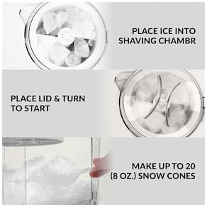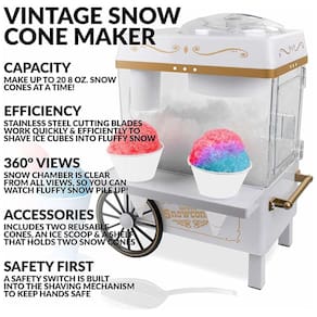 Tamanho perfeito Esta unidade tem o tamanho perfeito para caber em uma bancada de cozinha ou uma pequena mesa lateral, tornando mais fácil servir cones de neve onde quer que você vá