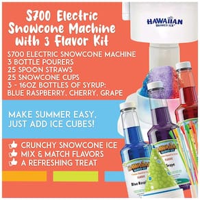 Máquina de Raspadinha com Cones e Xaropes Incluídos, Branca, 110v, HAWAIIAN SHAVED ICE 3519 S, Branco