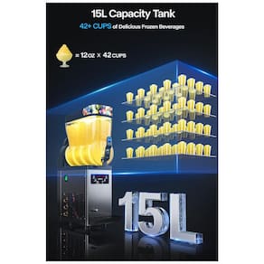 Capacidade de 15L: Com um tanque de 4 galões de grau alimentício, você pode produzir mais de 42 copos de produto (350 ml/copo). Ideal para estabelecimentos comerciais e grandes famílias.