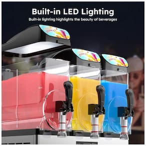 A Máquina de Frozen de três tanques da Mojgar, com compressor de 1200W de alta eficiência e condensador de microcanais de cobre, garante resfriamento rápido e desempenho consistente. Alterne facilmente entre os modos de bebida e frozen para atender ao seu estilo de serviço. Com três tanques transparentes de PC de 15L cada, totalizando 45L, essa máquina comercial de bebidas congeladas pode servir até 150 copos de 300ml em um único ciclo - ideal para grandes restaurantes, bares, hotéis e eventos. A iluminação LED embutida destaca suas bebidas vibrantes dia e noite. Os tanques transparentes e o painel de exibição iluminado chamam a atenção em qualquer ambiente comercial, desde cafeterias até barracas de festivais. Economize tempo e esforço com o sistema de limpeza integrado. Basta pressionar o botão de autolimpeza para enxaguar as peças internas completamente - sem necessidade de desmonte ou esfregação manual. Projetada para operação com baixo ruído, essa máquina se integra perfeitamente em cafeterias, cozinhas abertas e eventos sociais sem interromper as conversas ou a atmosfera. Com um resistente exterior de aço inoxidável e recipientes de contato alimentar de alta qualidade, esse fabricante de bebidas oferece desempenho duradouro e tranquilidade. Seja para bares, casas de suco, festas, restaurantes, hotéis ou eventos de catering, essa máquina de frozen de três tanques de qualidade profissional da Mojgar garante bebidas de qualidade consistente - toda vez, em qualquer lugar.