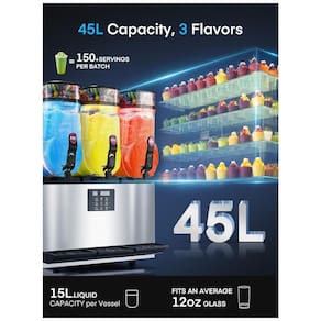 A Máquina de Margarita e Smoothie Gelado Comercial FOHERE, com tanques de alimentos de 15L cada, produz até 85 copos de 340ml de bebidas geladas por ciclo. Com tampas de fácil acesso, permite recargas rápidas, sendo perfeita para locais com alta demanda. Controla independentemente a temperatura de cada tanque, de 0 a 9, para ajustar a consistência do gelo, textura e ingredientes. Perfeita para criar duas bebidas congeladas distintas simultaneamente, seja frappes suaves ou slushies crocantes. Equipada com compressor Embraco premium, entrega slushies prontos em apenas 25-30 minutos, até 2x mais rápido do que compressores comuns, mantendo operação ultraeficiente. O design do helicóide garante congelamento uniforme e mistura ideal, garantindo bebidas perfeitamente texturizadas lote após lote. Os tanques iluminados por LED mostram suas criações coloridas, melhorando a visibilidade do produto para cativar clientes e estimular compras por impulso. A máquina perfeita para locais de negócios, food trucks, restaurantes, bares, etc.