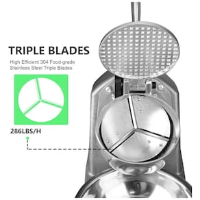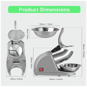 304 Material de aço inoxidável de qualidade alimentarApresenta 304 lâminas triplas de aço inoxidável sem corrosão de grau alimentício e a tigela de gelo, as condições à prova de ferrugem e higiênicas desta máquina de cone de neve garantem a segurança alimentar, juntamente com a base de fundição pesada para ficar em pé anos de uso.