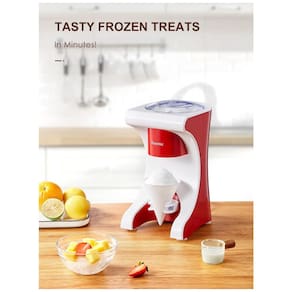 MAIS SAUDÁVEL: Faça slushies caseiros, cones de neve, coquetéis congelados e muito mais, diretamente da sua cozinha Você controla os ingredientes suco orgânico, sem açúcar, natural, e muito mais, tornando o melhor para você e sua família PRAZER DE FESTA: Uma maneira divertida e fácil de fazer deliciosas guloseimas de gelo raspadas, esta máquina é perfeita para festas de aniversário, churrascos, jantares e muito mais. RÁPIDO e FÁCIL: basta conectar, adicionar cubos de gelo regulares, fazer a barba, adicionar seu xarope ou suco de cone de neve favorito e cobrir frutas ou enfeites frescos Ótimo para coquetéis congelados, coquetéis, e reuniões de festas grandes tão fácil que seus filhos podem usá lo. TAMANHO PERFEITO: Este barbeador de gelo é do tamanho perfeito para caber em uma bancada da cozinha ou em uma pequena mesa lateral, facilitando o atendimento a cones de neve onde quer que você vá. Um interruptor de segurança é incorporado ao mecanismo de barbear para manter as mãos seguras.