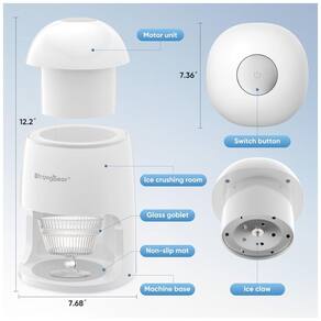 Especificações: Dimensões do Produto: 19,51 x 18,59 x 31 cm, Peso do Item: 0,82 kg, Número do Modelo: StrongBear Electric Shaved Ice Machine Cor:Branco Voltagem:110 volts Marca: Não Informado