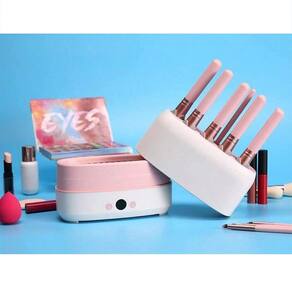 A máquina elétrica de secagem de pincéis cosméticos pode ser usada para limpar e secar pincéis de uma só vez, economizando tempo e esforço, tornando-a conveniente de usar.