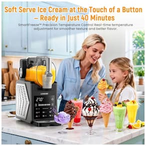 A Máquina de Slushie e Sorvete Azmsary FS306-US oferece tecnologia de congelamento rápido avançada para preparar bebidas geladas e sorvetes cremosos sem necessidade de gelo. Com capacidade de 2,5 litros, selecione um dos 6 programas pré-definidos — sorvete, frappe, slush com álcool, milkshake, suco congelado ou slush — otimizados para textura, sabor e temperatura ideais. Basta adicionar ingredientes como vinho, café, suco ou leite, escolher o modo via painel touch e aguardar 15 a 45 minutos para resultados consistentes.
