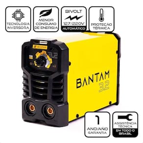 Máquina de Solda Inversora ESAB Bantam 3.2 Bivolt 110v/220v A Máquina de Solda Inversora ESAB Bantam 3.2 traz um novo conceito de máquinas portáteis, com alta tecnologia dos inversores ESAB, ideal para serralheiros e usuários finais que necessitam realizar projetos dentro e fora da oficina. Seguindo a tradição da marca, Bantam é sinônimo de um equipamento seguro, robusto e confiável, capaz de acompanhar o soldador onde o trabalho estiver. ALTO DESEMPENHO - Excelente soldabilidade e fácil abertura de arco com eletrodos E6013. A Bantam 3.2 é ideal para eletrodos de até 3,25mm; BIVOLT - Tensão de alimentação automática de 127V e 220V; PRATICIDADE - Com alça de ombro para transporte, a Bantam é compacta e cabe no armário de ferramentas, em uma mochila e até no baú da moto; PAINEL FÁCIL - Ajuste dos parâmetros de acordo com a bitola do eletrodo, tornando-a mais intuitiva e fácil de regular; ECONOMIA - Alta eficiência energética que garante o menor consumo de energia. Ao escolher a Bantam o soldador conta com e assistência técnica padrão ESAB. Oferecemos 1 ano de e a maior rede de assistência técnica do Brasil, garantindo tranquilidade aos nossos clientes com disponibilidade incomparável de peças, assegurando a manutenção e durabilidade das máquinas. Marca: Não Informado Ean: 7895678086196