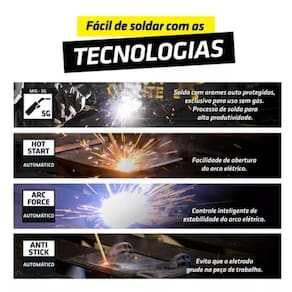 A inversora de solda imets-6140-bivolt super tork foi projetada com o intuito de modernizar e facilitar os trabalhos de solda. Combinado 3x1 a fonte de solda tem a capacidade de realizar 3 processos de soldagem como: mig sem gás, tig-lift e mma. Com placa eletrônica construída em base smd montagem robótica e inserção de componentes de alta qualidade, a fonte de solda possui longa vida útil e baixo nível de manutenção. Com tecnologia igbt aplicada em seu bloco de potência, a fonte de solda proporciona uma potente corrente de solda e baixo consumo de energia elétrica. Em sua construção eletrônica, dispositivos térmicos de proteção e cooler de alta capacidade de refrigeração aumentam seu ciclo de trabalho, segurança e produtividade em conjunto.
