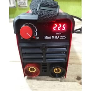 Especificações Técnicas: Tensão de entrada nominal: 127V/220V Bivolt ; Frequência: 60Hz; Ciclo de trabalho 60%: 115A; Ciclo de trabalho 100%: 89A; Corrente de entrada: 30,5A; Tomada 3 Pinos: 20A Conector Universal Positivo e Negativo : 9mm Nominal de saída: 24V; Mostrador Digital /Potenciômetro Analógico: 20-225A; Potencia Máxima: 4.1KW; Tensão sem carga: 80V; Eficiência: 85%; Ciclo de carga: 60%; Solda eletrodos: até 3,25mm 1/8 ; Classe de proteção: IP21S; Modo de Resfriamento: Refrigeração de ar forçada.