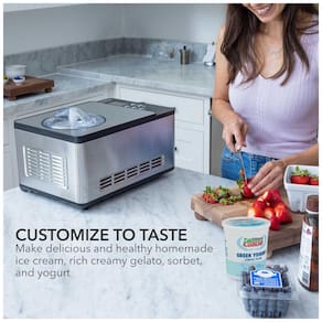 Máquina de sorvete automática com capacidade de 2L, carcaça de aço inoxidável, painel LCD, função de desligamento automático e taça removível.Bowl de congelamento