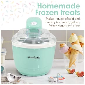 Sorveteira Americana 950mL Faça Sorvetes Caseiros com Facilidade A Sorveteira Americana 950mL é a escolha perfeita para criar sorvetes caseiros deliciosos em menos de 40 minutos. Com uma tigela de congelamento rápido de 950mL e uma poderosa pá motorizada, torna o processo de fazer sorvetes rápido, conveniente e divertido para toda a família. Ideal para entretenimento em festas familiares, churrascos e piqueniques, permitindo que você explore todas as suas receitas favoritas de sorvetes, sorvetes, gelatos e até iogurtes congelados.