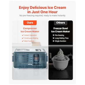 A Máquina de Sorvete Automática da VEVOR oferece três modos versáteis: sorvete, resfriamento e mistura. Com um simples toque, esta máquina de sorvete atende a todas as necessidades de sobremesa da sua família. Com capacidade de 1,5 litros e um motor potente de 150W, esta máquina de sorvete com compressor produz sorvete o suficiente para até 13 pessoas, garantindo desempenho rápido e eficiente. O compressor integrado faz sorvete em apenas 50-60 minutos, sem a necessidade de pré-congelar a tigela. Possui desligamento automático do motor para segurança, uma ventoinha de resfriamento integrada para operação suave e peças removíveis para limpeza fácil.