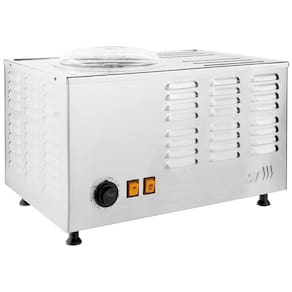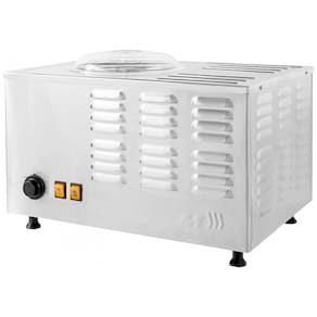 Máquina de sorvete elétrica com capacidade de 2 litros. Pode fazer até 6 litros de sorvete, iogurte congelado ou gelato por hora. Corpo e lâmina de aço inoxidável proporcionam durabilidade com um acabamento clássico. Toda a construção em aço inoxidável, incluindo lâmina. Feito na Itália