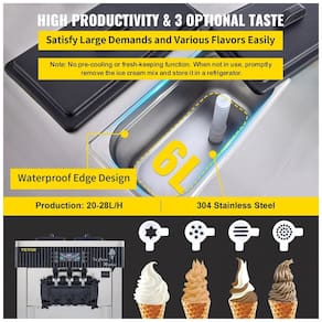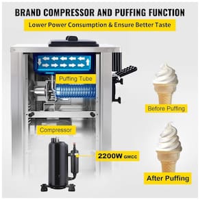 Máquina de sorvete hard serve comercial com compressor de alto desempenho, cilindro refrigerado de 6 litros em aço inoxidável SUS304, produção de até 18 litros por hora, tecnologia avançada de agitação tripla e puffing. Painel LED com controle de resfriamento automático, autolimpeza por toque único e ajuste de timer. Estrutura em aço inoxidável SUS201, rodízios para mobilidade.Bowl de congelamento