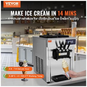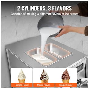 Máquina de sorvete soft comercial com alta produtividade de 18 a 28 litros por hora. Possui compressor robusto, dois recipientes em aço inoxidável SUS304 de 5,5 litros cada, com congelamento inicial em 14 minutos e lotes subsequentes em até 4 minutos. Painel de controle LED com resfriamento automático, limpeza por um toque e configurações de timer. Estrutura em aço inoxidável SUS401. Ideal para sorveterias, cafés, bares e quiosques, com três opções de sabores simultâneas.Bowl de congelamento