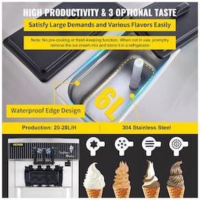 Máquina de sorvete soft comercial com 3 sabores (2 individuais + 1 mixado), painel de controle LCD com ajustes de tempo, temperatura e dureza, sistema de autolimpeza, alças, bandeja coletora removível e suporte externo para cones. Ideal para restaurantes, cafés, lanchonetes e supermercados.Bowl de congelamento