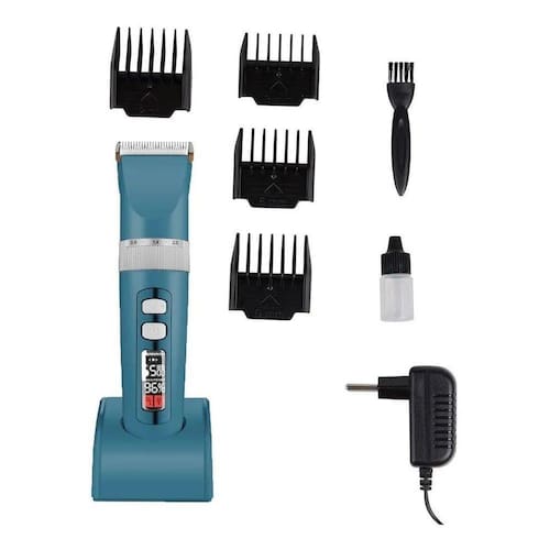 A velocidade do motor chega até 6500 RPM. Display em LCD digital, mostrando nível de bateria e velocidade. A lâmina que vem com a máquina é fabricada em aço, revestida em Titânio, com cortante de cerâmica, que não aquece e, por isso, não fere o animal.