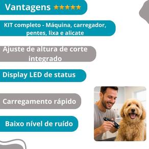 Máquina de tosa kemei km-1991 recarregável Descrição do anúncio: A máquina de tosa pet bivolt kemei km-1991 é ideal para tosar animais de pequeno e médio porte de forma eficaz e segura. Equipada com lâmina de aço inoxidável, possui tela lcd digital para monitorar a bateria e opera silenciosamente, garantindo conforto para o pet. Conteúdo da embalagem: Máquina km-1991 Fonte bivolt 4 pentes guia 3mm, 6mm, 10mm, 13mm Bisnaga com silicone Pente Cortador de unhas Lixa Manual do usuário Características: Sem fio Tensão bivolt Potência de 5w Lâminas de aço inoxidável ajustáveis 0,5 mm a 1,0 mm Motor de alta velocidade Carregamento rápido 3 horas Autonomia de até 120 minutos 4 pentes guia 3mm, 6mm, 10mm, 13mm Especificações: Material: abs de alta qualidade Tela lcd Sistema de corte r-shape Tempo de carregamento: 3 horas Tempo de uso: até 120 minutos Tensão de entrada: 5v Corrente: 1000ma Principais perguntas sobre o produto e respostas: 1 é indicada para pets de médio e grande porte Sim, eficaz para animais de qualquer tamanho. 2 o produto é resistente Sim, feito com materiais de alta qualidade e durabilidade. 3 tempo de carregamento da bateria Aproximadamente 3 horas. Marca: Não Informado Ean: 7905276309358