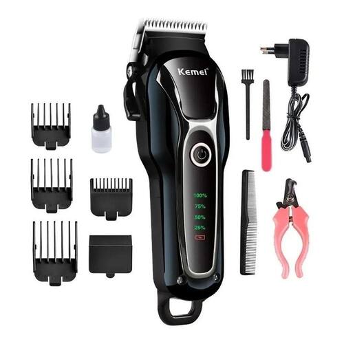Máquina de Tosa Pet - Bivolt - Profissional - Sem Fio - C/ Kit - Kemei KM-1991A Kemei KM - 1991 Pet Clipper é adequado para animais de pequeno e médio porte para a tosa comum.A lâmina é projetada para proporcionar um desempenho nítido, que não irá ferir a pele do animal de estimação ou prender o pelo.Especificações:- A Máquina Kemei KM-1991 é feito de material ABS e metal resistente, de alta qualidade.- Possui uma tela LCD digital para o estado da bateria durante o carregamento ou operação.- Lâmina de aço inoxidável: Á prova de ferrugem, alta precisão, lâminas cromadas; o sistema de corte R-shape seguro mantém-se perfeitamente afiado com aço inoxidável para ficando um melhor efeito de formato de cabelo.- Alavanca da lâmina: é ajustável para comprimento de corte de 0,5 mm para 1,0 mm, você pode alterar a proximidade de corte de seus animais de estimação.- Nível de acabamento ajustável- Motor de alta velocidade, rotação rápida, operação estável, sem aquecimento, silenciosa,- Carregamento Rápido: 3 horas de tempo de espera- Tempo de uso da bateira de lítio: 120 minutos- Pode ser conectado ao cabo de alimentação para uso contínuo sem interrupção.- 4 pentes guia: Aparar o pelo de seus animais de estimação e faça tipos de comprimento 3mm / 6mm / 10mm / 13mm facilmente.-KM-1991 é sem fio.-produto Bivolt-poder: 5W-tensão Entrada V : 5V-corrente mA : 1000mAMétodos:- Ajustar a lâmina para atender às suas diferentes necessidades.- Simplesmente instalar o pente guia de acordo para o comprimento desejado da lâmina.- Empurre o interruptor de energia no corpo principal para ligar o cortador.- Cortar o cabelo para o comprimento correto por movendo o aparador de volta contra o fluxo do cabelo.Itens inclusos:Kemei Professional Pet clipper KM-1991 máquina+ Kit- 4 Pentes plásticos niveladores do corte n. 3, 6, 10, 13 mm- 1 Cortador de unhas- 1 Pente plástico- 1 Escova da lâmina- 1 frasco c/ óleo lubrificante- 1 manual de uso- 1 Carregador de bateria