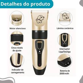 Máquina de tosa silenciosa - cortador de pelo premium Descrição do anúncio: Que tal cuidar dos pelos e do visual do seu melhor amigo no conforto de casa A máquina de tosa pet elétrica é a escolha ideal para garantir que seu animal de estimação esteja sempre bem cuidado. Com um design moderno e prático, este equipamento permite realizar a tosa de maneira eficiente e confortável, mesmo para os pets mais sensíveis. O motor potente e silencioso, combinado com uma lâmina de alta precisão, proporciona cortes perfeitos sem irritar a pele do animal. Além disso, a máquina é recarregável e pode ser utilizada sem fio, oferecendo maior liberdade de movimento. Conteúdo da embalagem: 01 máquina de tosa sem fio 01 cabo de carregamento usb 04 pentes de tosa 3mm, 6mm, 9mm, 12mm 01 escovinha para limpeza 01 cortador de unha 01 óleo lubrificante 01 lima de unha 01 pente de aço 01 tesoura 01 manual do usuário Características: Lâmina de alta potência para uso contínuo 4 pentes de corte com alturas diferentes 3mm, 6mm, 9mm, 12mm Motor com longa duração e baixo ruído Possibilidade de uso sem fio, com bateria recarregável de 1200mah Cabo de alimentação longo para maior praticidade Nível de acabamento ajustável Design ergonômico e leve, facilitando o manuseio Material da máquina: plástico, resina abc e aço inoxidável Lâmina de titanium e cerâmica para cortes precisos e sem alergia Recarregável com carregador bivolt 110v/220v Especificações: Pentes de corte: 3mm, 6mm, 9mm, 12mm Tempo de carregamento: 3 horas Duração de uso: 1-2 horas Tensão de voltagem: 3,7v Velocidade: 8200 rpm Dimensões: 185mm x 45mm comprimento x largura Peso: aproximadamente 0,240 kg Material da máquina: plástico, resina abc e aço inox Material da lâmina: titanium frontal e cerâmica traseira Principais perguntas sobre o produto e respostas: 1 a máquina pode ser Utilizado em cães e gatos Sim, a máquina de tosa pet elétrica é adequada para cães e gatos de diversos portes. 2 qual é o tempo de carregamento da máquina O tempo de carregamento de 3 horas. 3 a máquina faz muito barulho Não, a máquina possui um motor silencioso, com operação abaixo de 50 db, ideal para animais sensíveis ao ruído. 4 a lâmina pode causar alergia no meu pet Não, a lâmina é feita de materiais hipoalergênicos como titanium e cerâmica, que são seguros para a pele dos animais. 5 a máquina pode ser Utilizado enquanto está carregando Sim, a máquina pode ser utilizada tanto sem fio quanto conectada ao cabo de alimentação. 6 como faço a limpeza da máquina A lâmina é removível e pode ser facilmente limpa com a escovinha fornecida. O corpo da máquina não é lavável. 7 quais são os tamanhos dos pentes de corte incluídos A máquina vem com 4 pentes de corte: 3mm, 6mm, 9mm e 12mm. 8 a máquina é adequada para Sim, o motor e as lâminas de alta potência fazem dela uma excelente opção tanto para uso doméstico quanto para