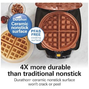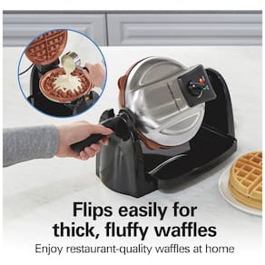 A ação de inversão produz waffles grossos e macios A inversão de waffles durante o cozimento os torna crocantes por fora e macios por dentro até 79 polegadas de espessura. Placas removíveis antiaderentes de cerâmica remova o waffle das placas antiaderentes sem furar ou raspar As grades são removidas quando você termina de cozinhar para facilitar a limpeza. Controle de escurecimento ajustável cozinhe seu waffle mais leve ou mais escuro, do jeito que você quiser. Design em aço inoxidável Waffle IRON limpa facilmente e tem uma aparência moderna que ficará ótima em sua bancada. Grades e bandeja de gotejamento fáceis de limpar as grades e a bandeja de gotejamento são removíveis e podem ser lavadas na máquina de lavar louça para uma limpeza simples. Componentes incluídos Waffle Bakers Estilo Flip Flip Desfrute de waffles macios em casa com a máquina de waffles belga Hamilton Beach Flip. Com a capacidade de virar waffles durante o cozimento, controle de escurecimento ajustável e pratos removíveis, você pode criar resultados com qualidade de restaurante com limpeza sem esforço