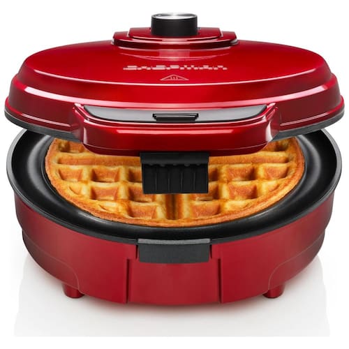 Máquina de Waffle Chefman Anti Overflow para 4 unidades, com 7 configurações de sombra, canal anti transbordamento e revestimento antiaderente. Ideal para waffles clássicos, doces e salgados.Porta-fio