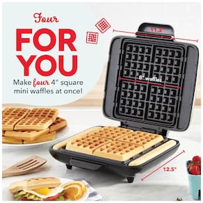 MAIS DO QUE WAFFLES Faça paninis, batatas fritas e até pizzas de biscoito Qualquer massa molhada irá waffle suas guloseimas e lanches em 4 porções de tamanho de Share Ótimo para crianças ou em movimento MESS FREE Chega de vazamentos ou respingos de massa transbordando. As laterais internas do bolso retêm qualquer excesso, tornando a limpeza fácil Sem desperdício. Dimensões 30 x 27 x RÁPIDO FÁCIL Basta conectá lo e pronto Aquece em minutos. As superfícies duplas antiaderentes fornecem uma temperatura de cozimento uniforme para resultados consistentes, todas as vezes PRESENTE PERFEITO O presente de casamento ou casamento perfeito Seu tamanho pequeno ocupa pouco espaço no balcão, e seu design elegante e opções de cores modernas combinam com qualquer decoração de cozinha Adicione ao seu registro agora INCLUI Apoiado por uma garantia do fabricante de 1 ano, o fabricante de waffles belga DASH de 1200 watts inclui pés antiderrapantes, placas de aquecimento antiaderentes, um livro de receitas e acesso ao banco de dados de receitas todas as peças não elétricas são facilmente limpas
