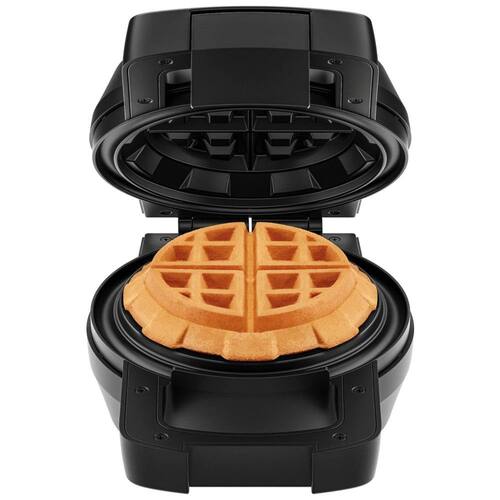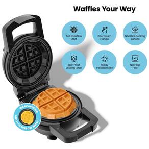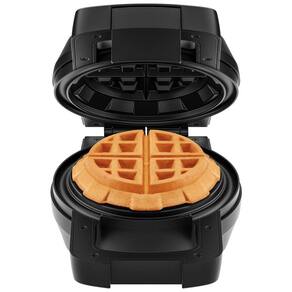 Máquina de Waffle Chefman com tampa de travamento, 700W, ideal para waffles recheados. Possui fosso antitransbordamento, luzes indicadoras e superfícies antiaderentes fáceis de limpar.Porta-fio