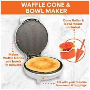 Máquina de Waffle e Cone de Sorvete MasterChef WCB 041, inclui modelador de cone e prensa de tigela. Ideal para preparar cones e taças de waffle caseiros em minutos.Porta-fio