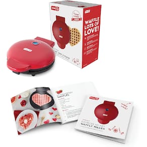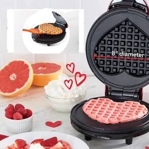 Máquina de Waffle Dash formato coração, aquece em minutos, luz indicadora de temperatura, superfícies antiaderentes, fácil de usar.Dash Máquina de Waffle Grande Formato Coração