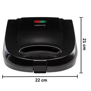 Máquina de Waffle Agratto Aroma Preta, prepara até 2 waffles, superfície antiaderente, alças com trava, base porta fios e luz piloto.Porta-fio