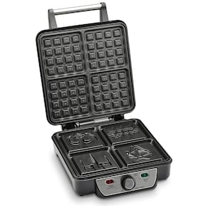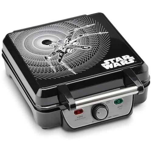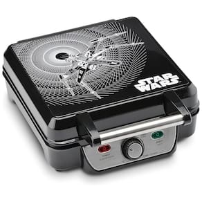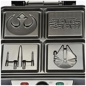 Máquina de Waffle Star Wars para 4 fatias com controle de temperatura e pratos antiaderentes.Porta-fio