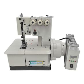 - 3 agulhas - 4 fios - largura da costura: 6,4mm - altura do calcador: 6,0mm - comprimento máximo do ponto: 4,0mm - tipo da agulha: b63x1214 - lubrificação: manual - rotação máxima: 2000ppm - motor: direct drive diferencial deste modelo - potencia: 550w - voltagem: bivolt - lubrificação manual com buchas auto-lubrificantes a base de grafite e eixo central acoplado em 2 rolamentos - buchas da barra de agulha em bronze sinterizado