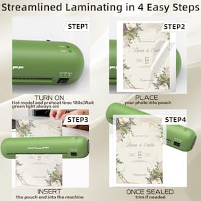- 3 minutos de aquecimento para economizar seu tempo: sabemos que seu tempo é precioso, seja você um professor ocupado preparando materiais de sala de aula ou um pai laminando fotos de família queridas. É por isso que este laminador se aquece em apenas 3 minutos! Sem esperas longas nem momentos perdidos: realize suas tarefas com mais rapidez para que você possa se concentrar no que realmente importa.
