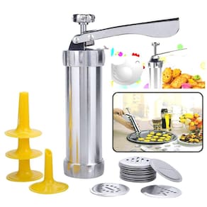 Máquina Modeladora Biscoito 4 Bicos 20 Formas De Bolacha Cookie- Lindos e perfeitos resultados- Fácil e prático de usar- Rapidez e agilidade na preparação- 20x Diferentes discos de molde formatos dos biscoitos- 4x Bicos para acessórios de decoração- Atividade divertida para toda a família!Descrição do Produto:Leve sua produção de biscoitos a um novo nível com a Máquina Modeladora Biscoito! Agora você pode espremer um número extremamente grande de biscoitos em pouco tempo, trazendo resultados bonitos e uniformes. Com mais de 20 formas diferentes para escolher, você terá uma variedade incrível de biscoitos para encantar a todos. Basta encher a massa, colocar o disco de motivo desejado, posicionar a prensa de biscoitos na assadeira não untada e acionar a alavanca. É simples assim!Especificações Técnicas:- Material dos bicos: Plástico- Material da máquina de biscoitos: Alumínio, Aço Inoxidável- Tamanho aproximado: 21,5cm x 5,5cm X 5,5cm (Alça de 14cm)- Peso aproximado: 240g- Material dos discos: AlumínioGarantia e Devolução:Oferecemos uma garantia de 3 meses para o produto. Além disso, você tem 7 dias para testar o produto e, caso não fique satisfeito, poderá devolvê-lo sem custo algum.Aproveite essa oportunidade e adquira agora mesmo a Máquina Modeladora Biscoito 4 Bicos 20 Formas De Bolacha Cookie! Surpreenda sua família e amigos com biscoitos deliciosos e perfeitamente modelados. Faça seu pedido agora! Marca: innovaree-commerce